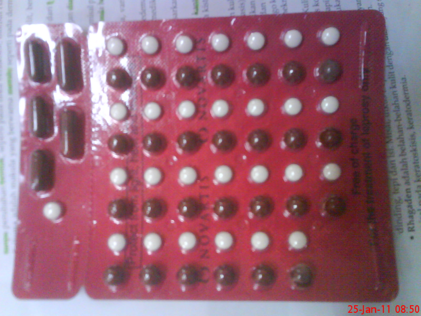 26 Januari ternyata hari kusta. Jadi kebetulan banget, aku lagi ada di tempat yang jadi kunjungan penderita. Kusta/Morbus Hansen dibagi menjadi 2 yaitu Pausi basiler dan Multi basiler, tahu kan penyebabnya? Mycobacterium Leprae. Sekarang bisa diobati dengan MDT (Multi Drugs Therapy), nah bentuknya gini nih, obatnya: